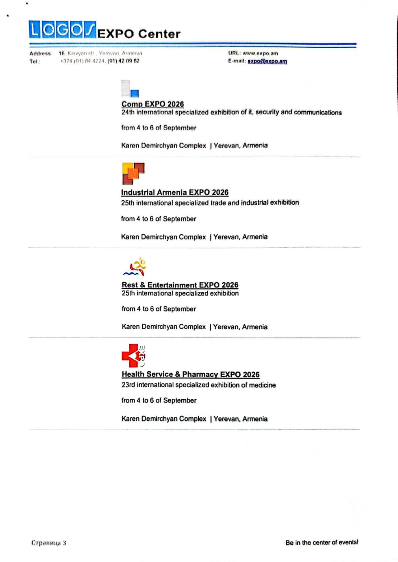 亚美尼亚LOGOS EXPO会展中心2026年国际展览日程
